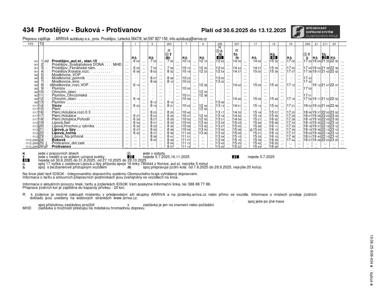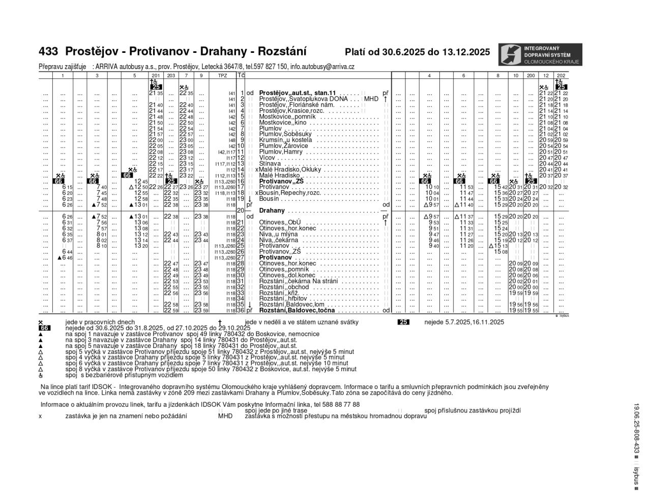Vážení občané, touto cestou Vás informujeme o mimořádné změně jízdních řádů autobusových linek 780433 a 780434, které vstoupí v platnost od 30. června 2025. V příloze naleznete podrobné schválené jízdní řády s konkrétními změnami, které zahrnují úpravy platnosti omezení pro jednotlivé spoje. Spoje 200, 201, 202 a 203 na lince 780433 a spoje 208 a 211 na lince 780434 nebudou jezdit v uvedených termínech, tedy 5. července 2025 a 16. listopadu 2025.